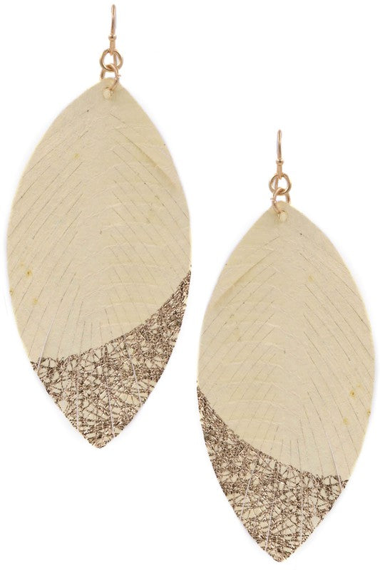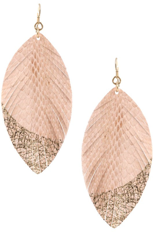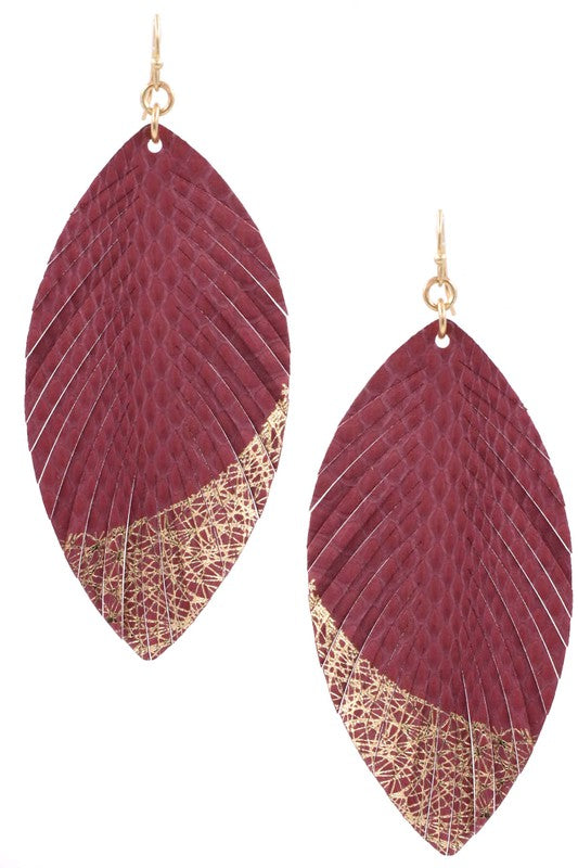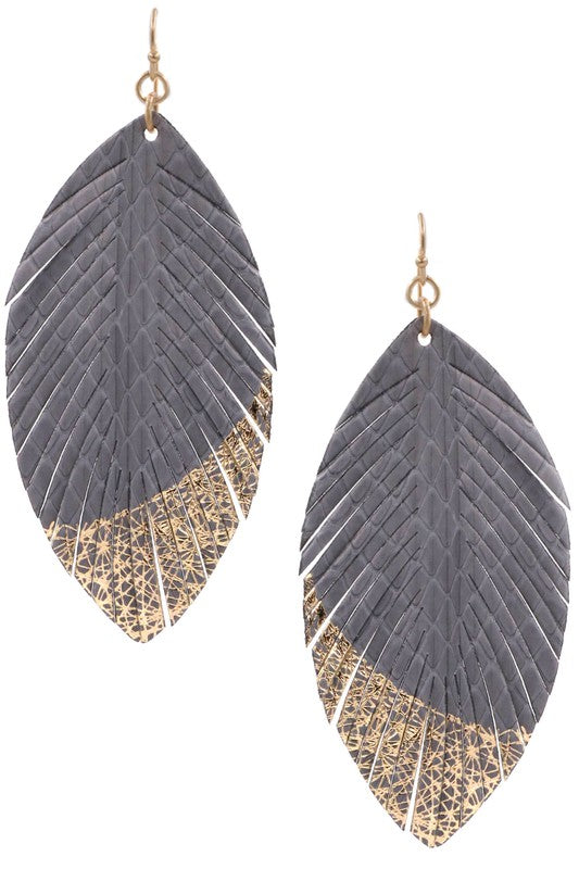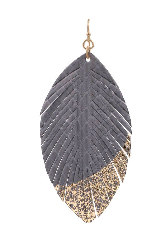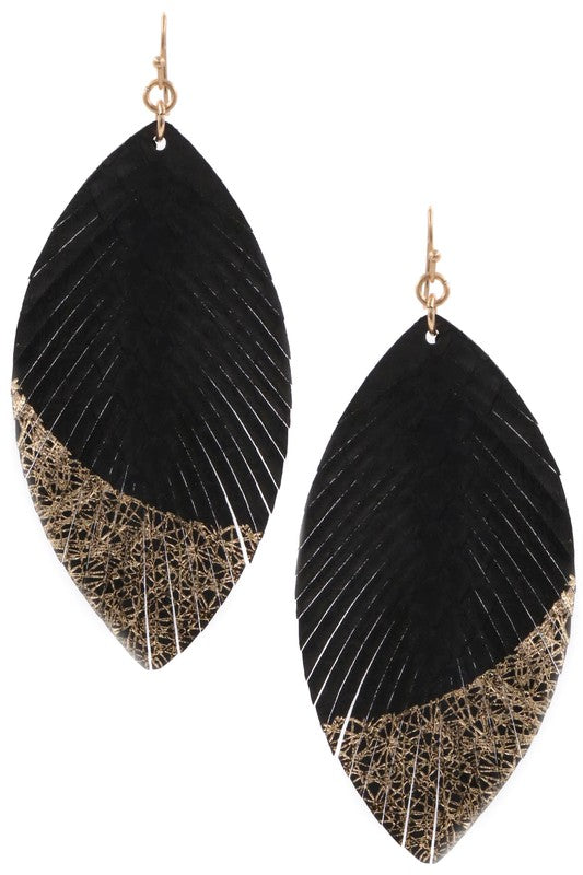 Faux leather feather drop earrings Earring drop length:3 1/2" Fish hook ear wire