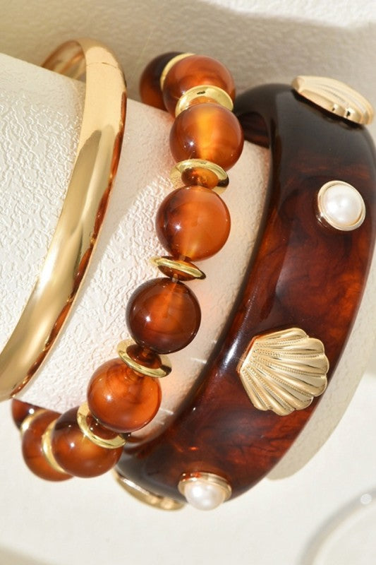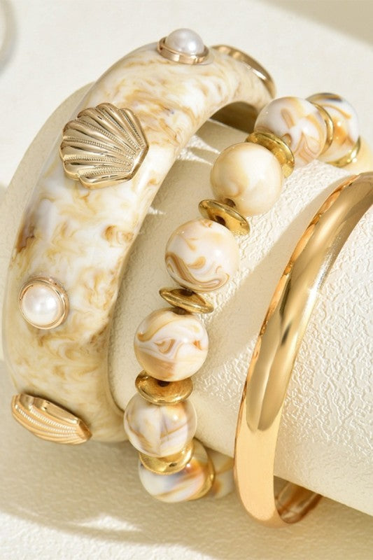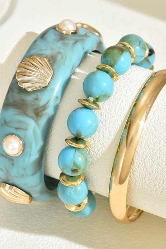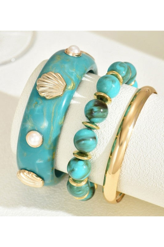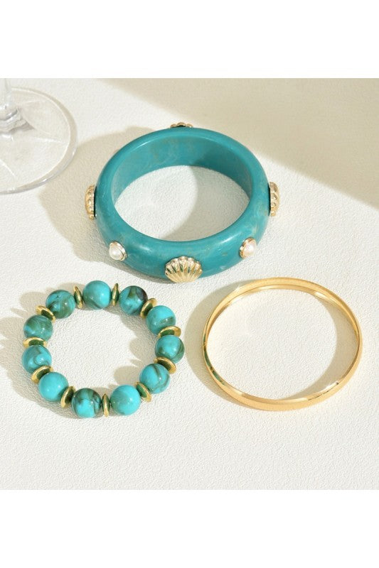 Resin Bead Shell Geometric Turquoise Bracelet Set
